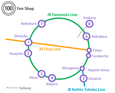 - You can take JR trains (except JR express trains) running within the 23 wards of Tokyo as many times as you want.